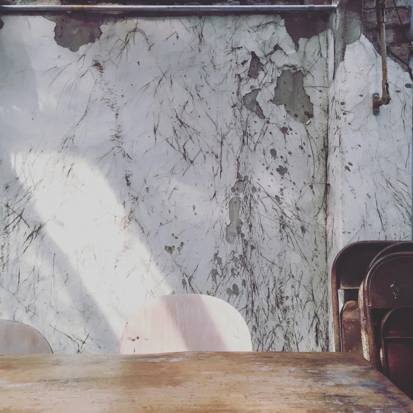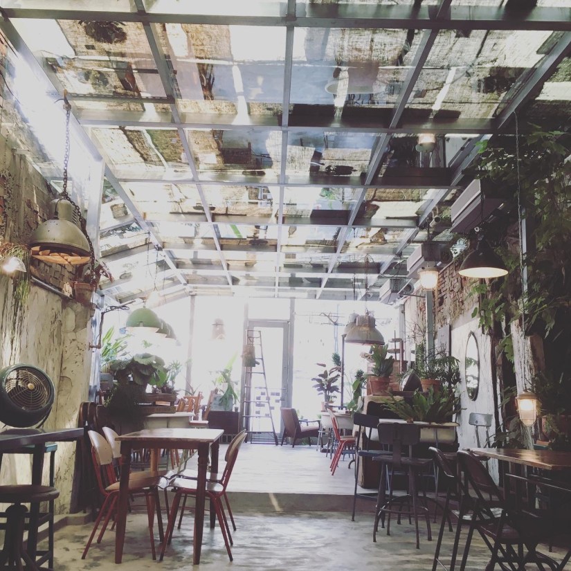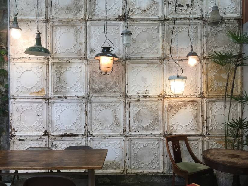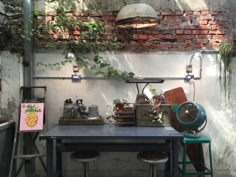 斑駁的牆面、綠意盎然的植栽、古老的抽屜藥櫃(?