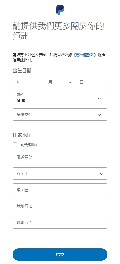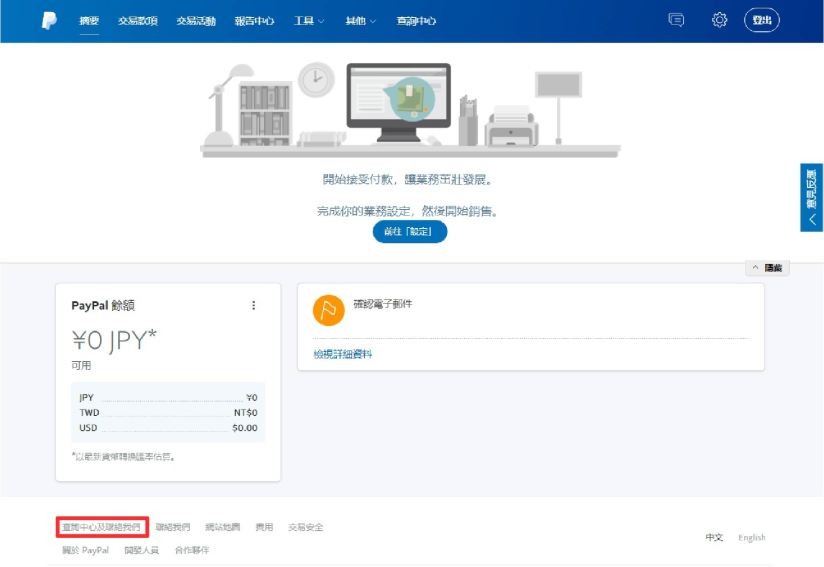 如果paypal尚未認證完成,底下會有紅字出現尚未認證完成的資訊
