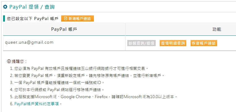 所以要連結玉山銀行與paypal,要從玉山銀行的官網進入