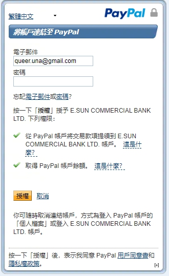 連結你的paypal帳號(要和你剛剛申請的是一樣的喔!)