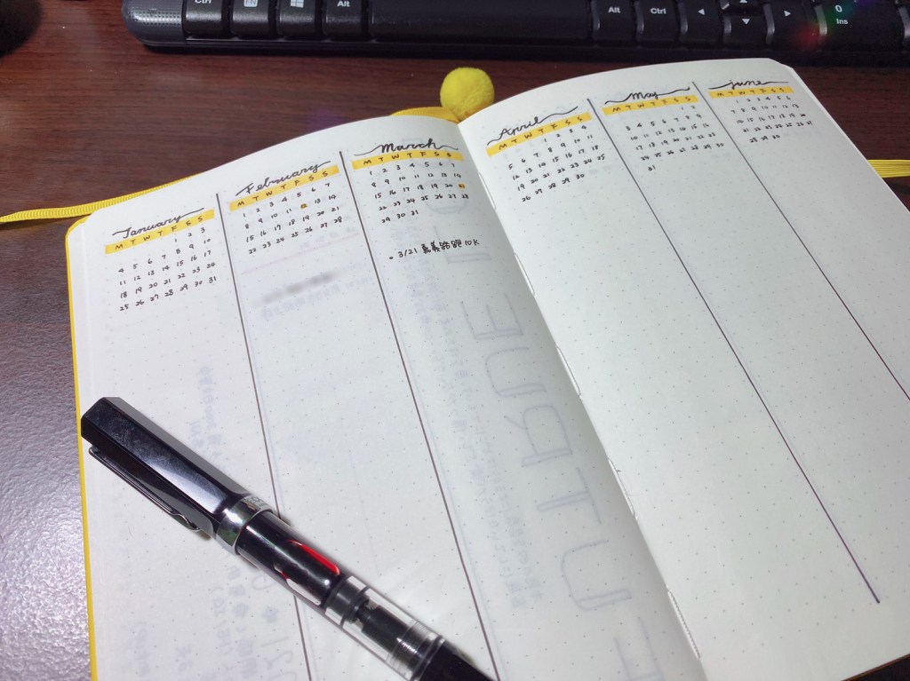 進入到月計畫,之前思考過各種形式,後來覺得這種直式的可能是自己比較合用的