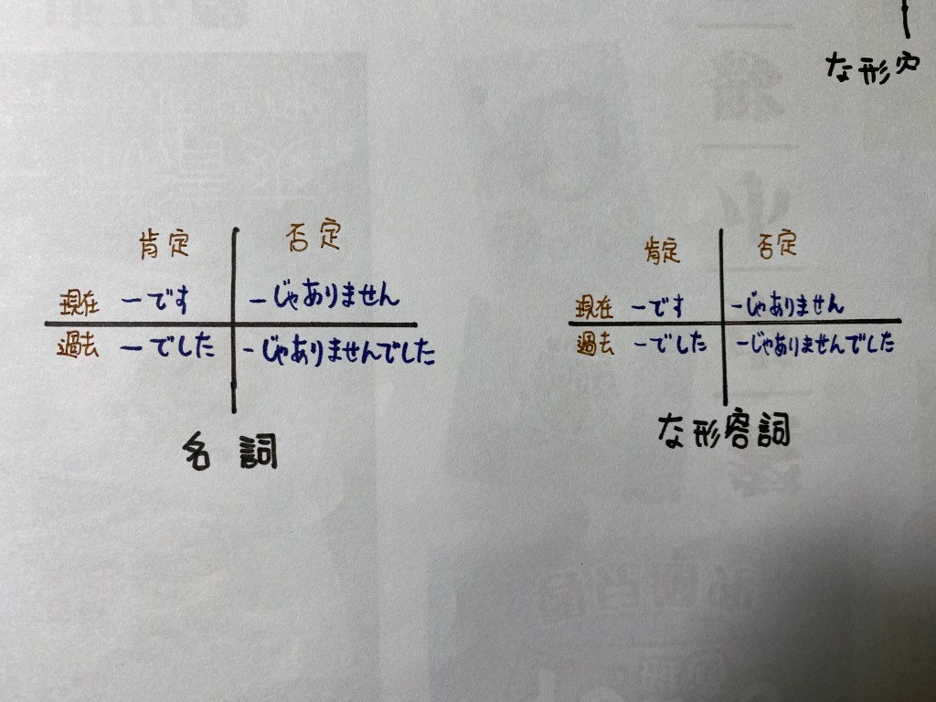 這邊可以小小提醒,雖然名詞和な形容詞的現在/過去變化相同